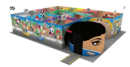 Students race through the exhibit in groups of 8 to 10. The exhibit is comprised of 11 pit stops. The pit-stops are the 1) Starting line, 2) Brain, 3) Mouth, 4) Stomach, 5) Small Intestine, 6) Heart, 7) Lungs, 8) Kidneys, 9) Bones, 10) Muscles, 11) Skin.